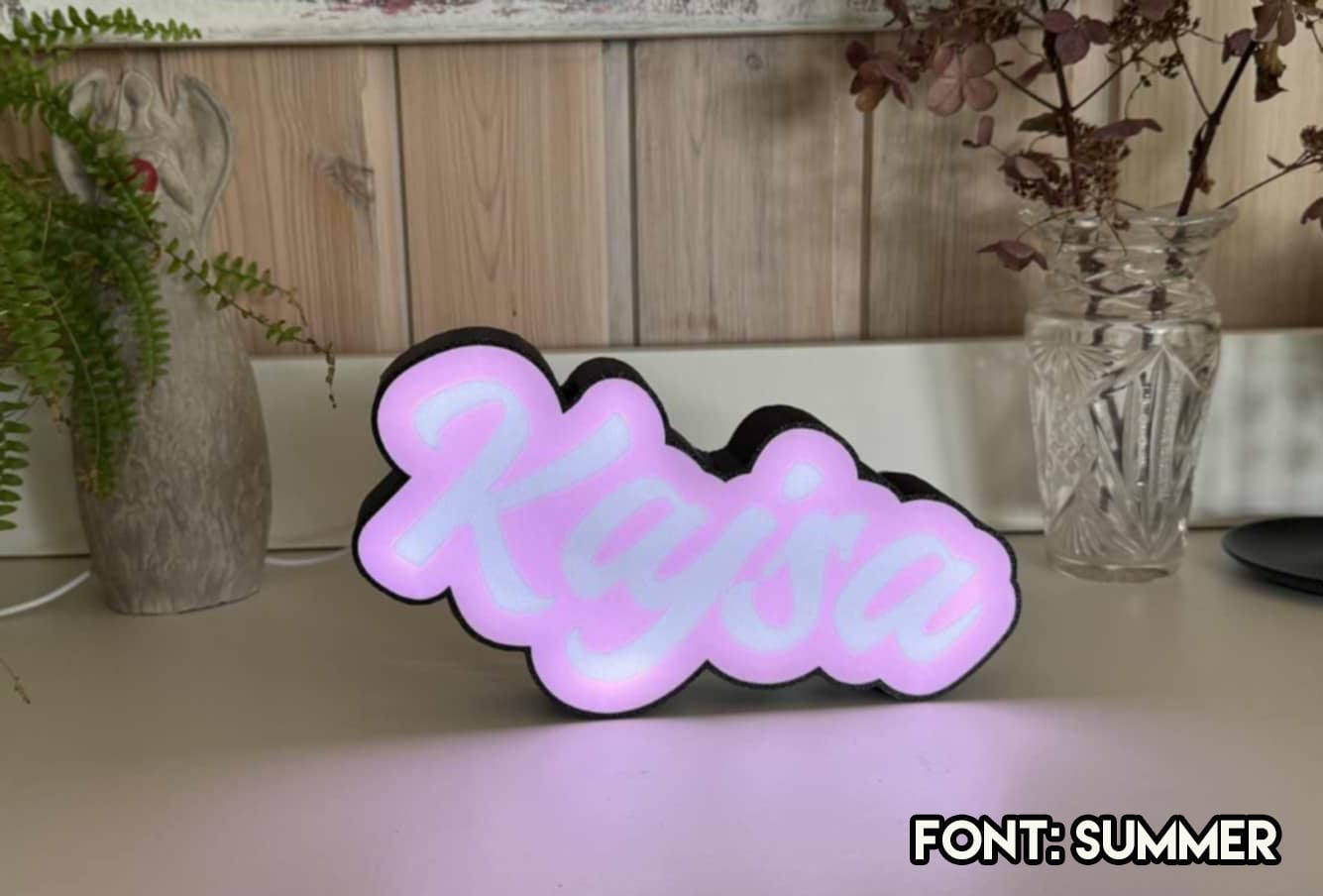 När du beställer en GlowSign-box får du något unikt – med din egen text och 2 valfria färger.