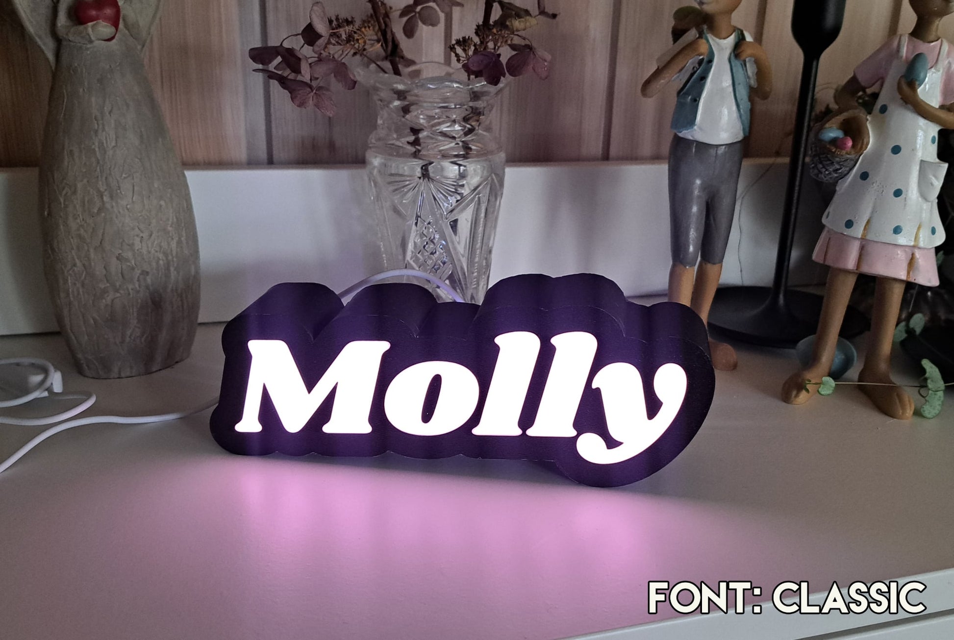 Varje box är max 230 x 230 mm, tillverkad i tåligt material och kommer med LED-belysning med USB kontakt bakom texten – så att din design verkligen lyser upp.